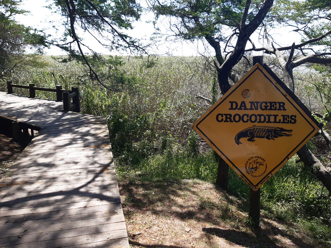 U vesničky St. Lucia se dá jít touto cestou směrem k moři - ale protože je to oblast, kde zároveň řeka St. Lucia vtéká do moře (pokud je v ní zrovna dost vody a dostane se k němu), jsou tam i mangrovy a rákosí, kde můžete potkat krokodýly. :) Takže jsem měl logicky oči na šťopkách :):