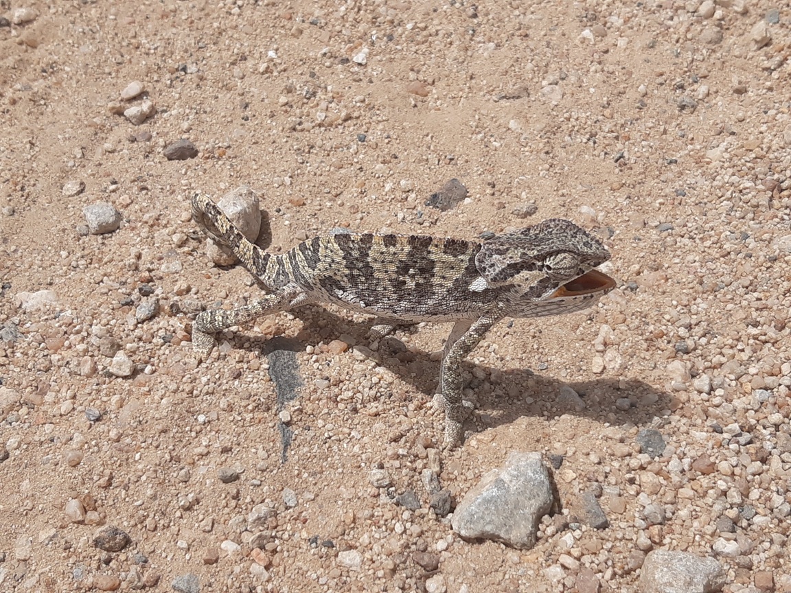 Cestou zpět od Jessicy mi procházel přes cestu tento pěkný chameleon :):
