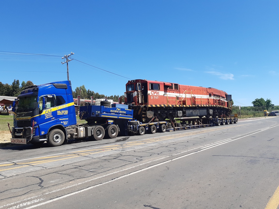Cestou z Nelspruitu k moři jsem pak potkal tahač a na něm lokomotivu! :) To se u nás fakt nevidí :):