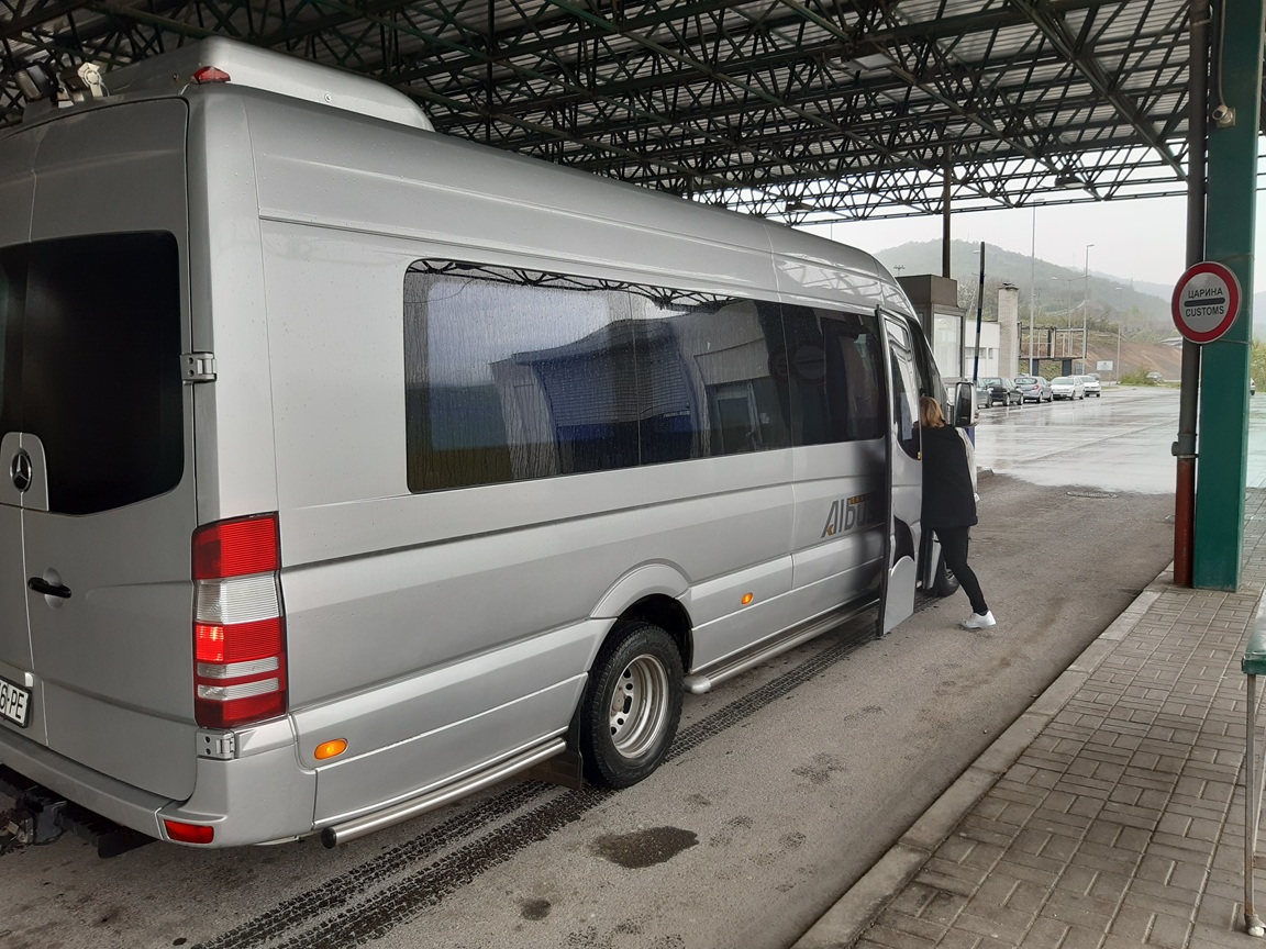Další zemí, kde jsem doposud ještě nebyl, je Severní Makedonie. :) Cestu sem jsem spojil s výletem do sousedního Kosova, odkud jsem chtěl jet do Makedonie původně vlakem, ale protože vlaky delší dobu na této trase už nejezdí (což jsem zjistil až v Kosovu), tak jsem z Prištiny vyrazil tímto minibusem směr hlavní město Skopje - zde fotka na hranicích, kde došlo ke kontrole od celníků :):