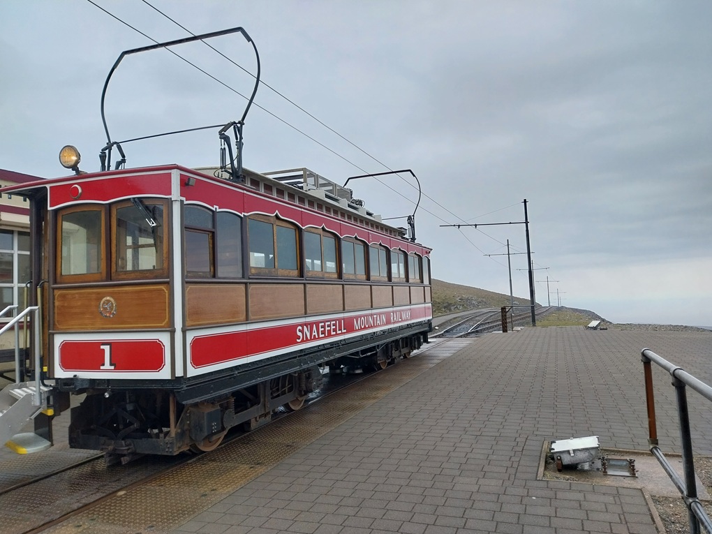 A tato tramvaj vás pak může vyvést k nejvyššímu kopci ostrova, který se jmenuje Snaefell a má přes 600 metrů :):