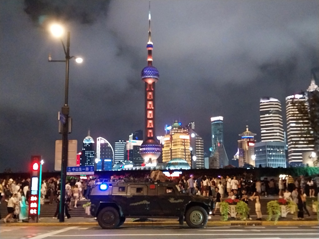 Při druhé návštěvě Šanghaje jsem pak zašel k vyhlídce Bund znovu a tentokrát potkal spoustu policistů - trochu mi to přišlo jako paradox, kdy na jedné straně jsou západní obchody jako Gucci či Prada, na druhé pak policisté v nažehlených komunistických kalhotech a košilích. :)